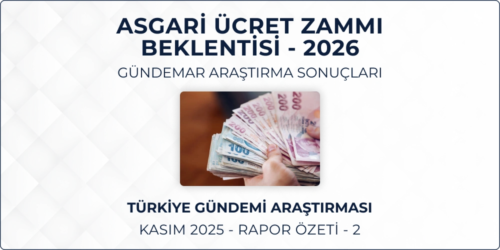 GÜNDEMAR’ın Kasım 2025 Türkiye Gündemi araştırması, 2026 yılı asgari ücretine ilişkin kamuoyu beklentilerini ve hükümetin yapacağı artışa dair öngörüleri ortaya koyuyor.